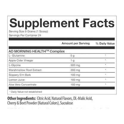 Good Mornin’ by AD Life is a gut-friendly, recovery-priming morning formula designed to kickstart digestion, hydration, and overall wellness from the moment you wake up. Each scoop combines L-Glutamine, Apple Cider Vinegar, and L-Glycine to support gut lining integrity, reduce inflammation, and promote smoother nutrient absorption.