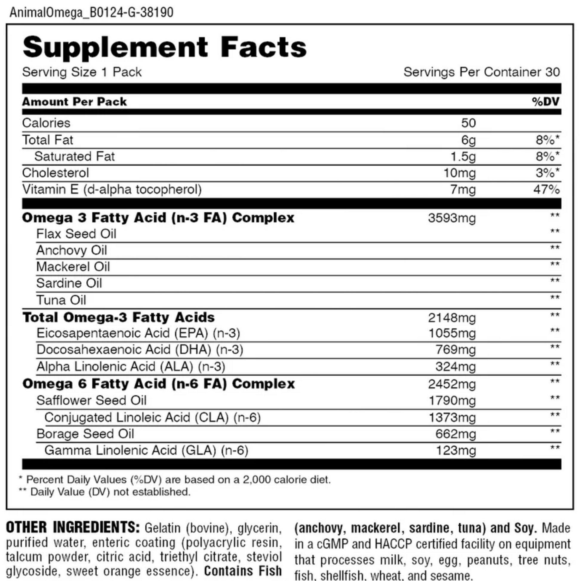 Animal Omega is a high-density essential fatty acid pack built for athletes who demand more from their recovery, joint health, and metabolic performance. Each daily pack delivers a complete spectrum of omega-3 and omega-6 fats sourced from cold-water fish and premium plant oils. Clean, potent, and purpose-driven — exactly what intense training requires.