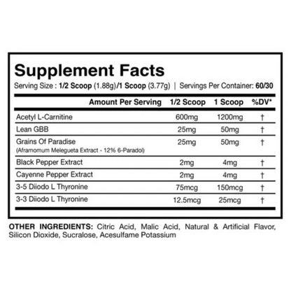 Thermogenic Intensifiers: Lean-GBB™, Grains of Paradise, Cayenne Extract, and Black Pepper Extract collectively amplify heat, sweat response, and calorie burn.