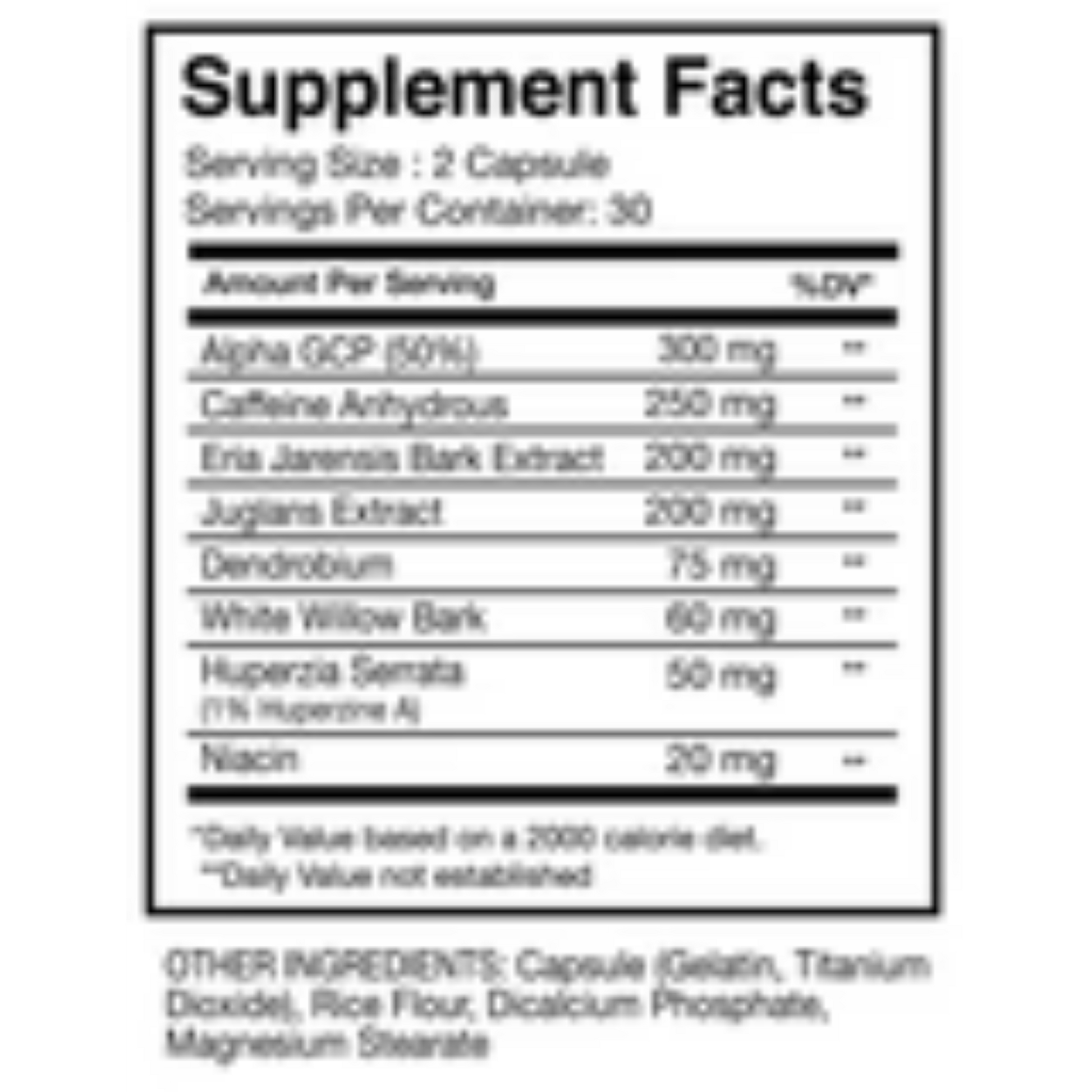 Stimulant & Energy Matrix: Caffeine Anhydrous (250 mg) delivers clean, fast energy. Dendrobium and Niacin support increased alertness, circulation, and training output.