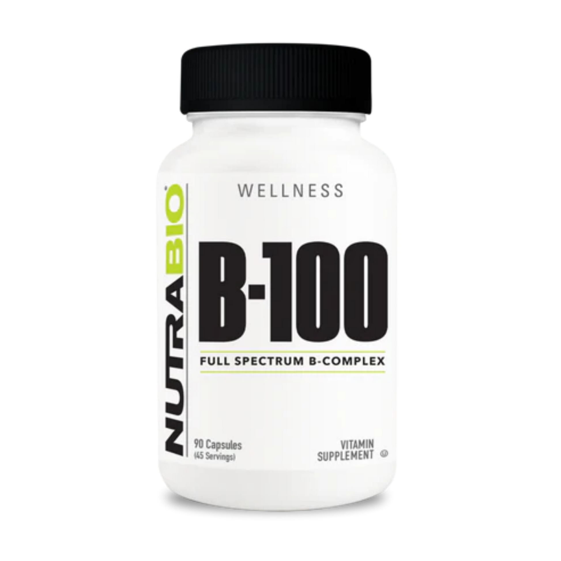 NutraBio B-100 is a full-spectrum B-complex designed to fuel energy production, metabolism, and cellular recovery. It’s a complete system of high-potency B vitamins built for athletes who demand more from every rep and every recovery phase.