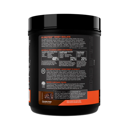 Rule 1 Whey Isolate is the go-to protein for athletes who want pure muscle fuel — nothing extra, nothing fake. Each scoop delivers 25g of high-quality whey isolate with zero fat and minimal carbs to keep your nutrition clean and recovery sharp.